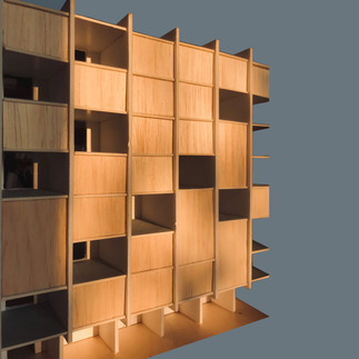 Στο ισόγειο του κτιρίου εντάσσονται εμπορικές χρήσεις και στο αίθριο ένας χώρος ανάπαυσης και συζήτηση. Στους ορόφους αναπτύσσονται οι μονάδες κατοίκησης, κοινόχρηστες κουζίνες, ημιυπαίθριοι χώροι και κοινόχρηστοι χώροι εκτόνωσης. Η κύρια δομή του κτιρίου που δημιουργεί τις μονάδες κατοίκισης είναι από εμφανές οπλισμένο σκυρόδεμα, ενώ οι ξύλινες όψεις τοποθετούνται ορίζοντας τους ιδιωτικούς και τους κοινόχρηστους χώρους. Οι ένοικοι δρουν ως μία συλλογικότητα που σκοπό έχει την διαφύλαξη του φυσικού περιβάλλοντος, το κτίριο αποτελεί έναν δίαυλο επικοινωνίας τους με την πόλη.